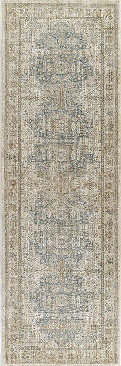 Rooted in tradition yet crafted for modern living, this Georgina rug showcases a grand medallion layout enriched with intricate floral and scrollwork detailing. A soft wash of space-dyed blues and earthy neutrals gives it the look of a treasured antique, while the durable polyester construction offers everyday resilience. The distressed finish adds character and dimension, allowing the design to feel timeless but never too formal. Perfect for grounding a classic living room or adding refinement to a transitional space, this piece blends heirloom style with practical comfort.