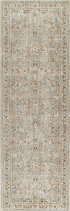 Rooted in tradition yet crafted for modern living, this Georgina rug showcases a grand medallion layout enriched with intricate floral and scrollwork detailing. A soft wash of space-dyed blues and earthy neutrals gives it the look of a treasured antique, while the durable polyester construction offers everyday resilience. The distressed finish adds character and dimension, allowing the design to feel timeless but never too formal. Perfect for grounding a classic living room or adding refinement to a transitional space, this piece blends heirloom style with practical comfort.