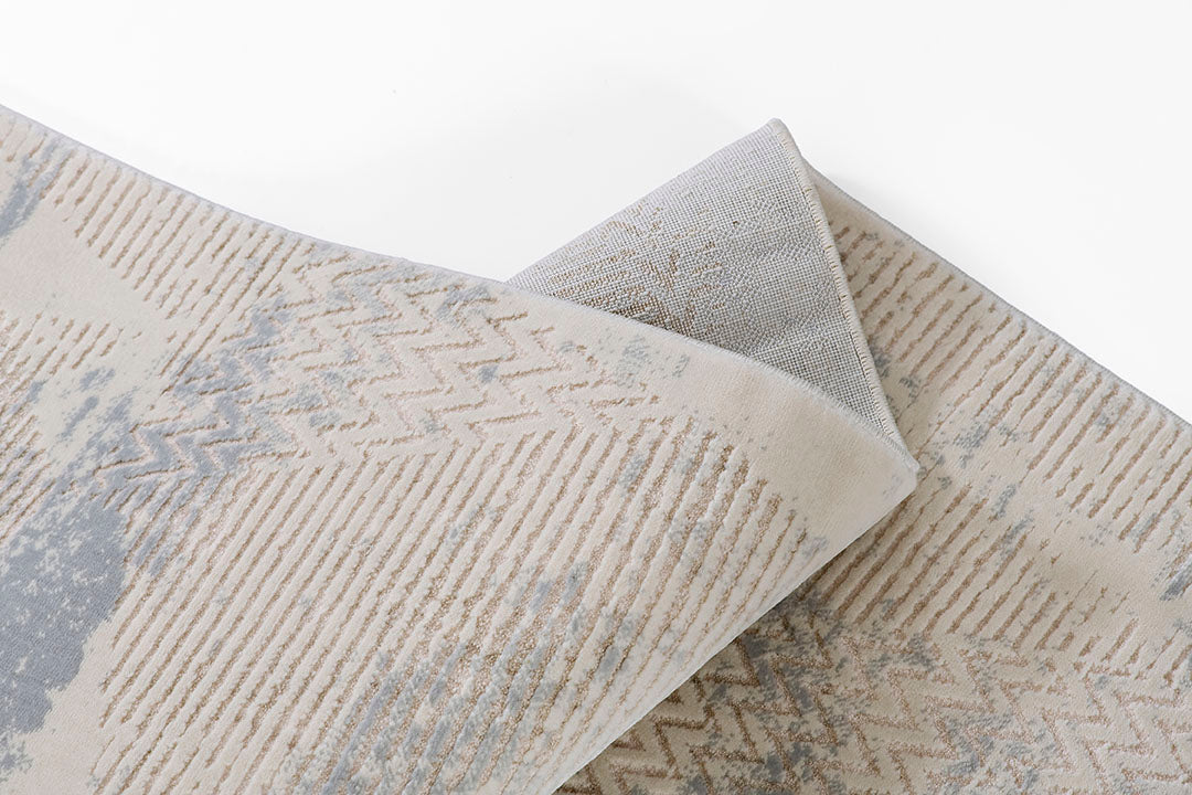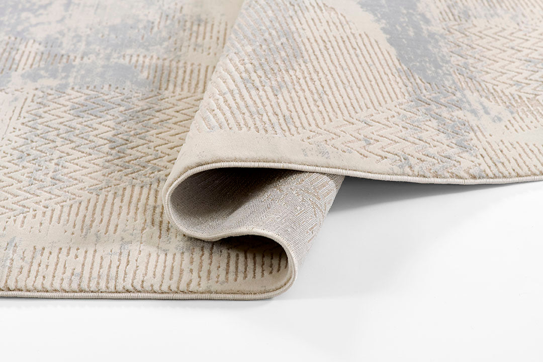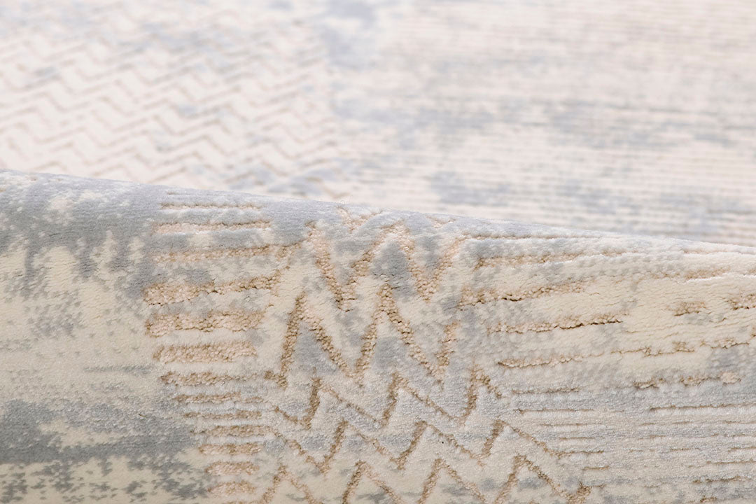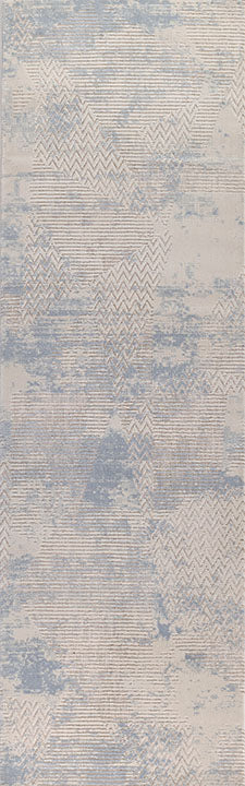Soft, serene, and effortlessly modern, this Vera rug brings an airy elegance to any space. Its layered abstract pattern drifts across the surface like shifting clouds, blending misty light blues with warm neutrals to create a calming, atmospheric effect. Subtle linear and chevron details add depth and texture without overwhelming the eye, giving the rug a beautifully balanced, contemporary look. Crafted from a durable yet soft blend of polypropylene and polyester, this machine-made design offers lasting performance with a gentle sheen that enhances its dreamy, cloud-washed aesthetic. Perfect for bedrooms, living areas, or any room that calls for a touch of tranquility, this rug introduces modern sophistication with a weightless, airy feel.